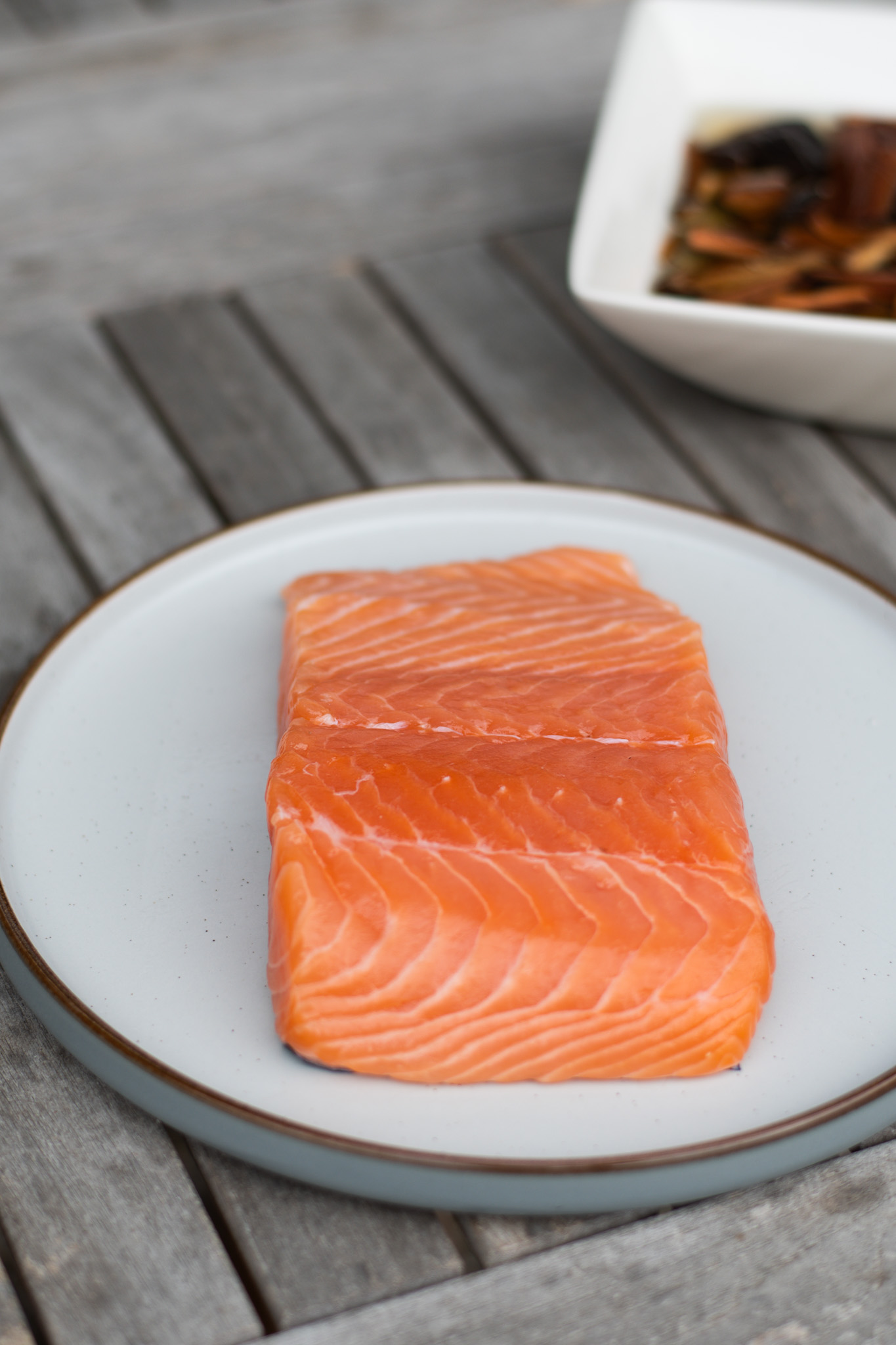 I have accompanied my salmon with fresh asparagus (just at the end of the season) and a Swedish potato salad. I also love serving it with a lightly pickled fennel and cucumber salad with fresh grated horseradish. All you need to do is slice a fennel bulb as finely as you possibly can, if you have a mandolin even better. Peel half a cucumber and de-seed, also slice finely. Place in a bowl with 50ml white wine vinegar, 25ml water, 15g caster sugar and half a teaspoon of salt. Mix well and leave for 30 minutes. Add finely chopped dill. The acidity in the salad counters the richness of the salmon perfectly.